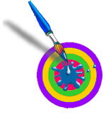 This is the first version of our logo meant for invoices and other print media that is generally one color. YBP created a two color version in purple and yellow for stationary and business cards. The bulls eye represents our core value of getting the job done right. The other elements tie together our capabilities in the different creative fields.